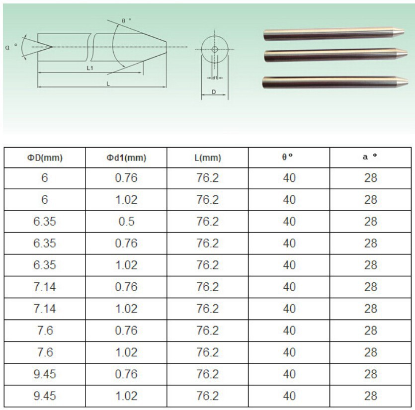 砂管的結(jié)構(gòu)十分簡(jiǎn)單,基本上由兩段構(gòu)成,即錐狀人口和柱狀出口,因不同用途其尺寸略有差別,如圖所示。