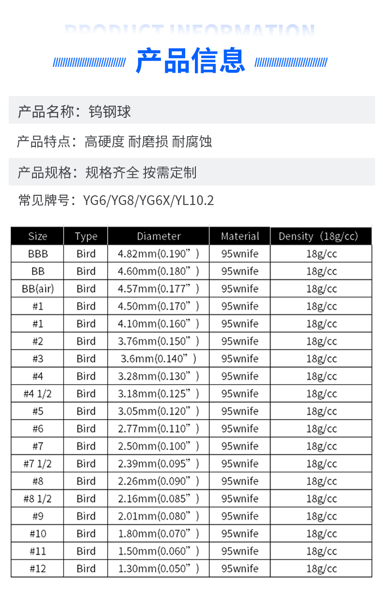 材質型號: YG6/YG8/YG15等