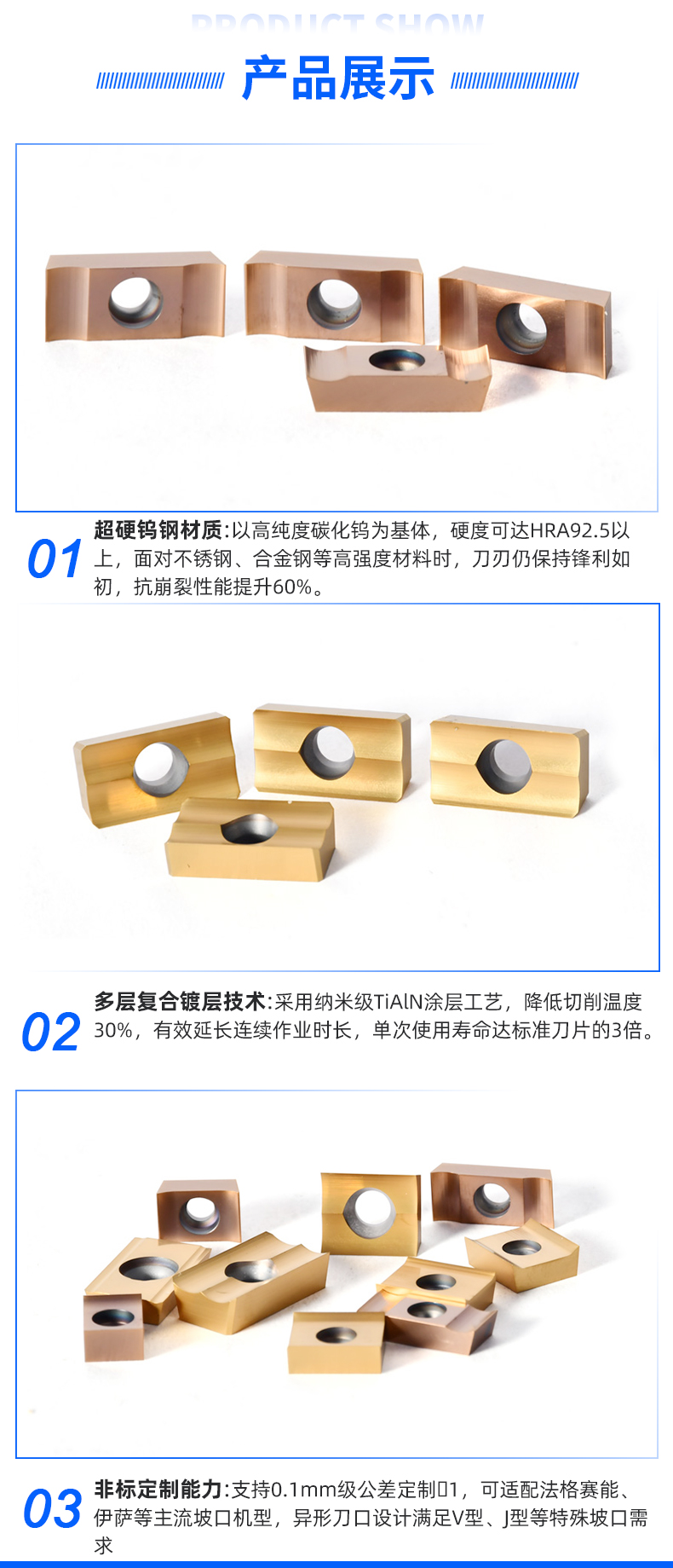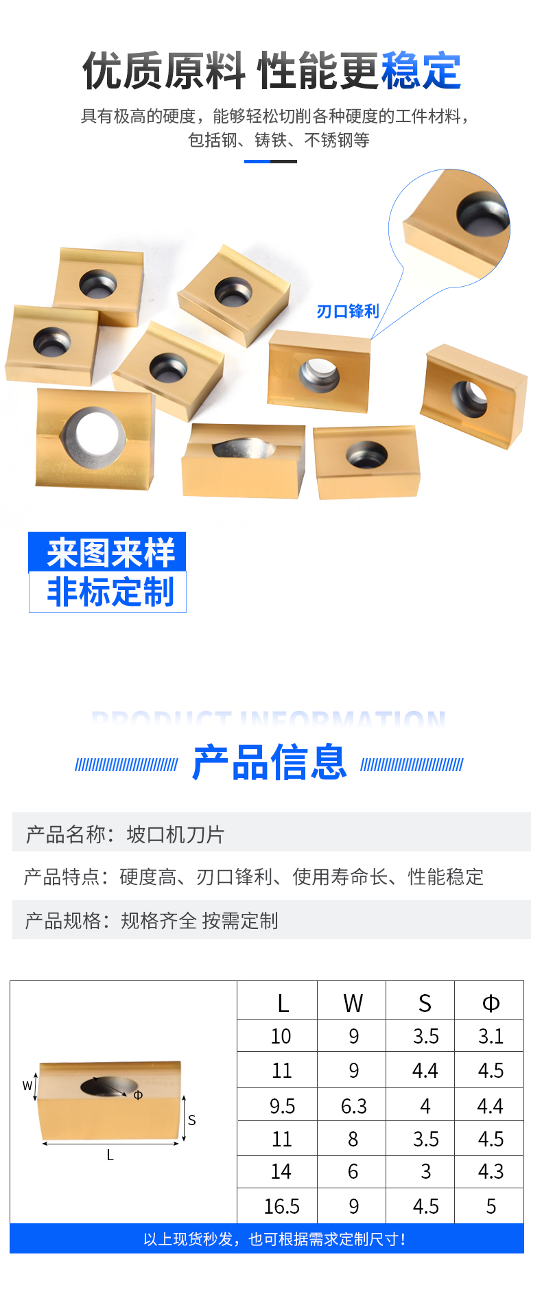 多元規格定制:支持刀片長度 50-300mm、刃口角度 30°-60° 定制,適配手持式、臺式等不同坡口機型號。